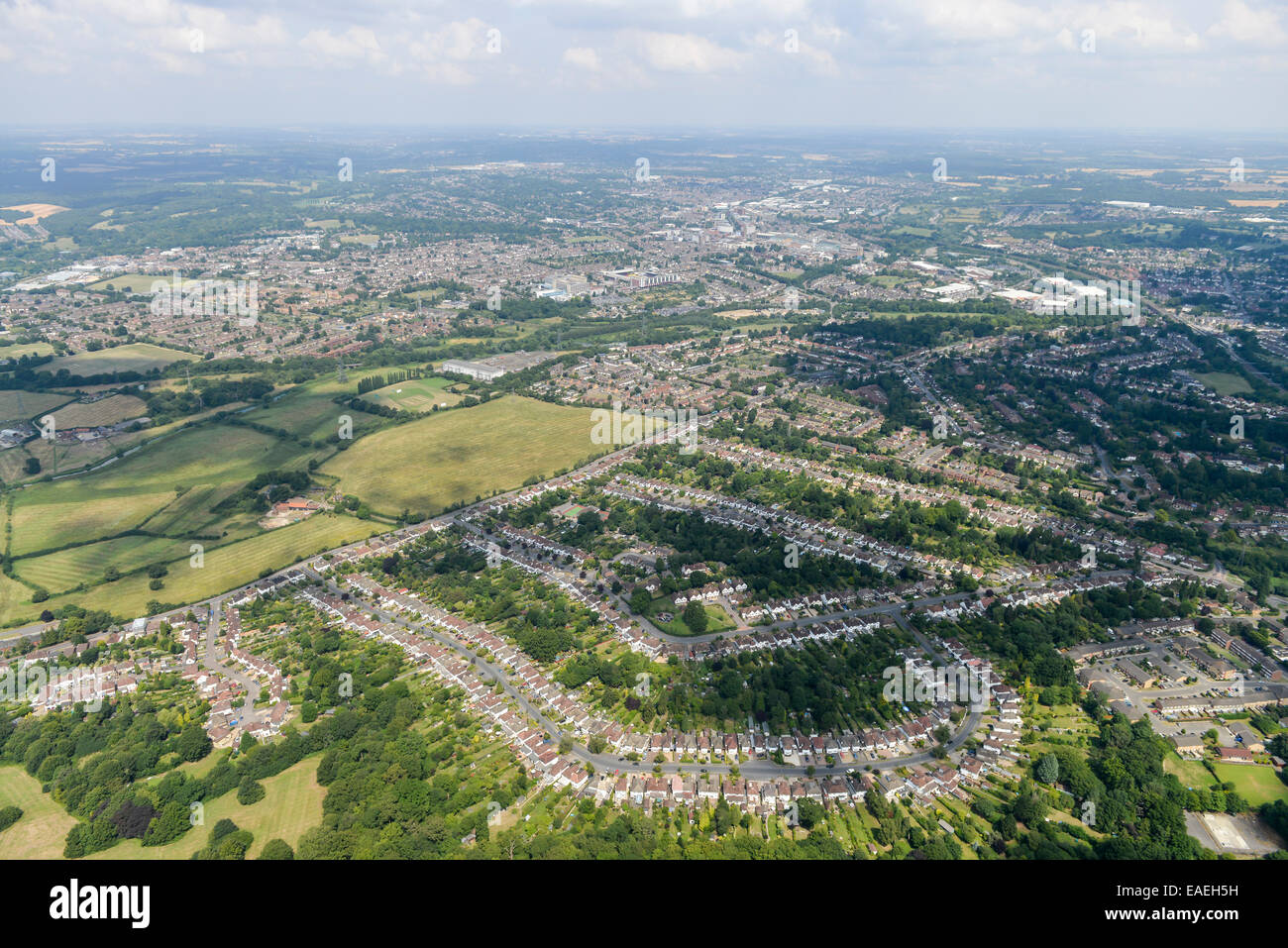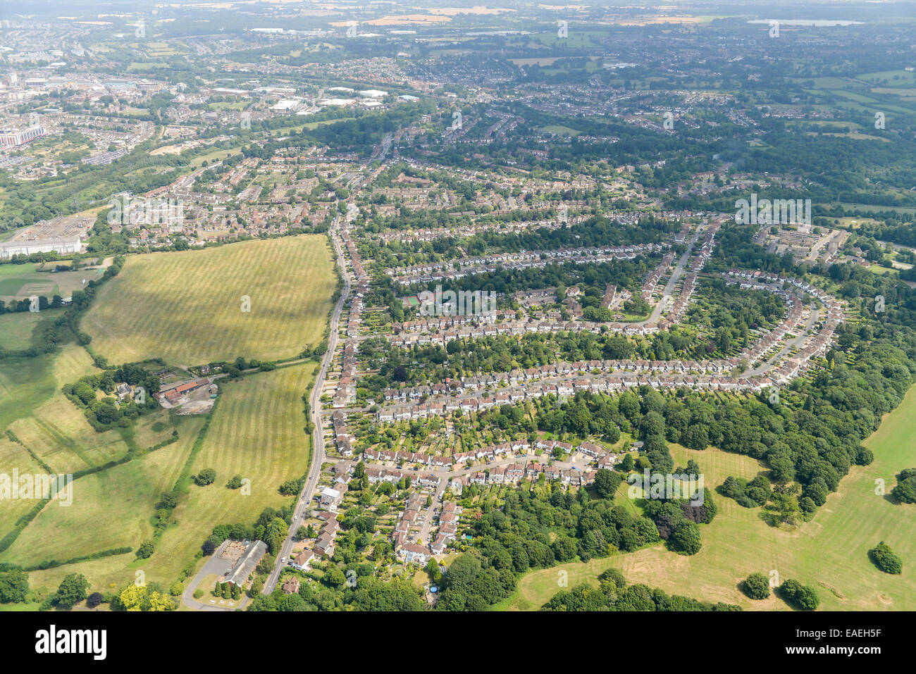 An Aerial View Showing Suburban Housing South Of Watford With The Town Visible In The Background Stock Photo Alamy