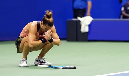 Open tennis tournament at USTA Billie Jean King National Tennis Center. Sakkari was coming off a three-hour 30-minute match against Andreescu on Monday where she ended the 2019 champions 11-match unbeaten streak at the US. Maria Sakkari of Greece reacts after winning a quarterfinal match against Karolina Pliskova of Czech Republic on day ten of the 2021 US.